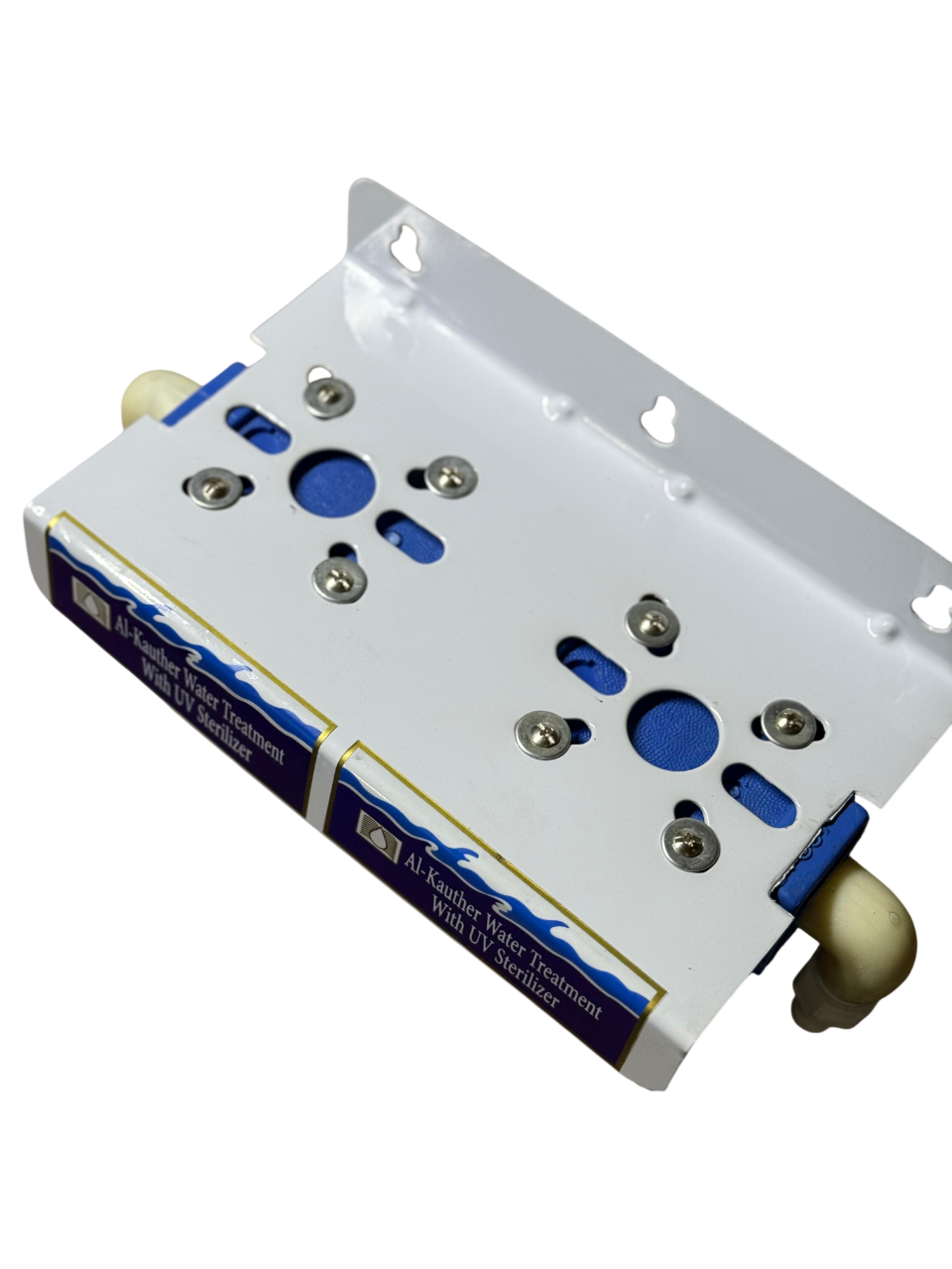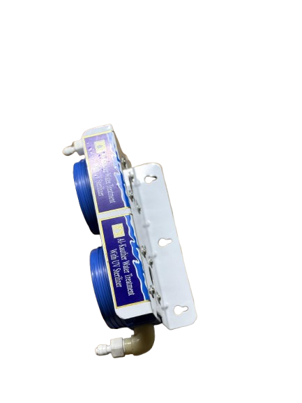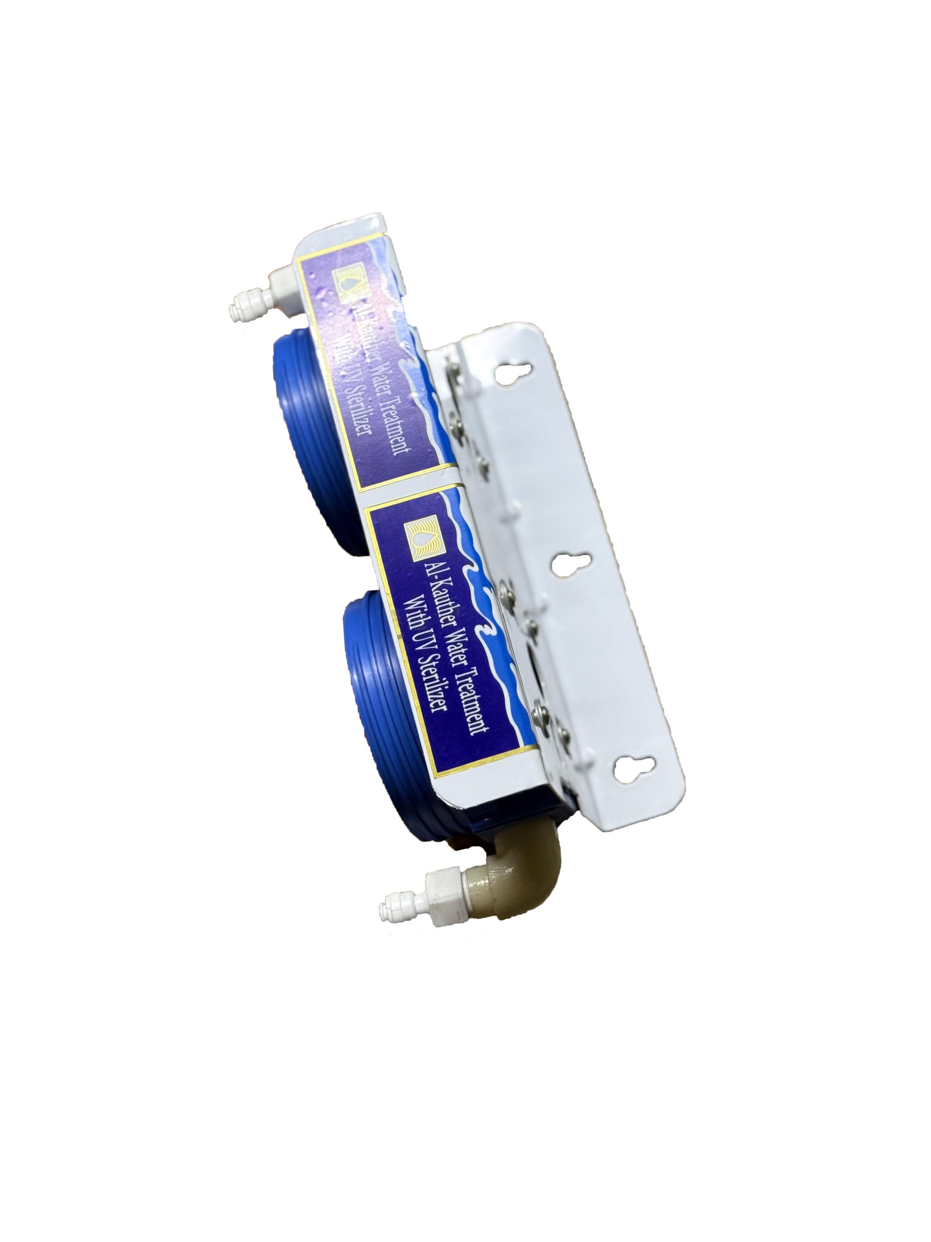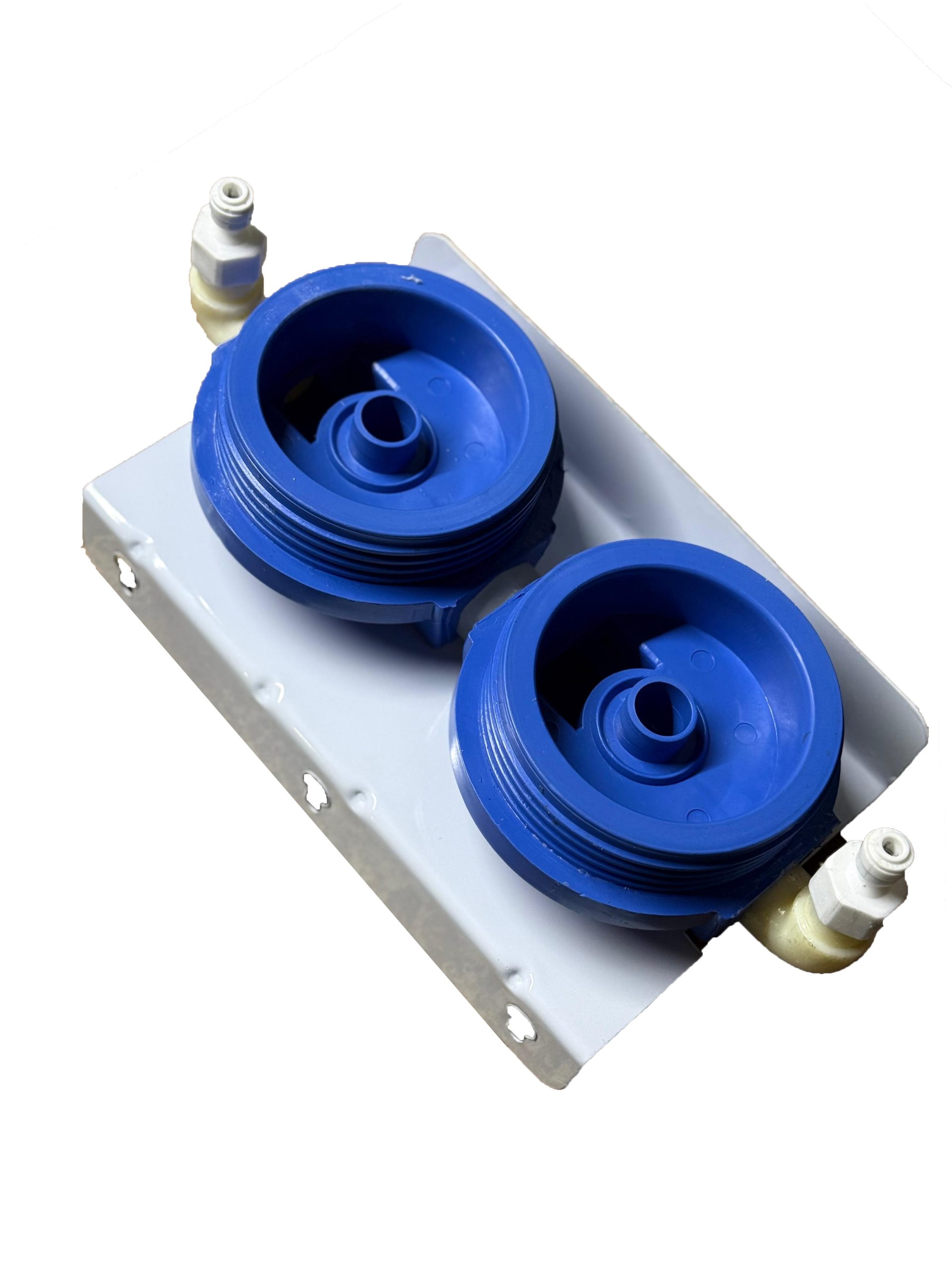 Dual-cartridge filter housing accommodating two standard filter cartridges for enhanced water treatment. Allows combination of different filtration media for comprehensive removal of sediment, chlorine, and other contaminants. Durable construction with easy cartridge replacement.